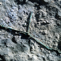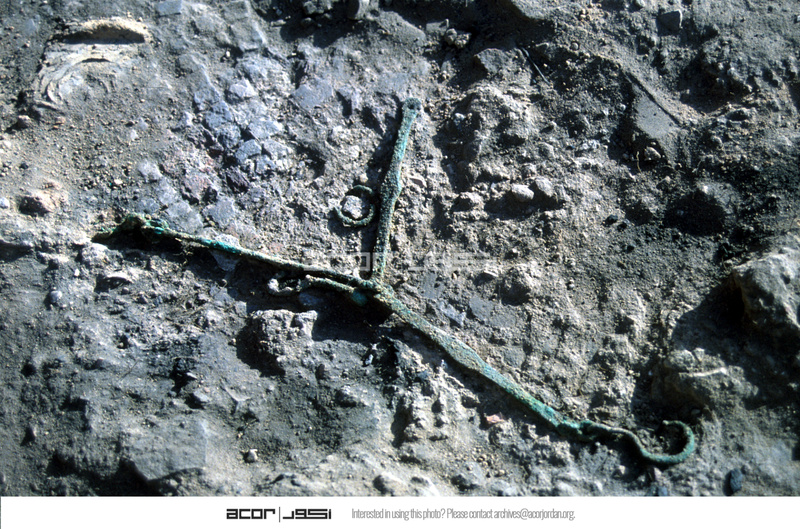 - Close-up view to east of Cu/Cu alloy pieces in-situ. ( taken withour card in frame) CS only - Sq. B2. Locus 12/FN8.