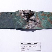 Cu/Cu alloy door binding. - Sq. B2. Studio. Locus 12/Pail 56. Reg # PCP .0069.