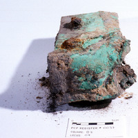 - Cu/Cu alloy door hinge. Pre-conservation. - Sq. B2. Studio. Locus 07/Pail 15/FN5. Reg #PCP0037.