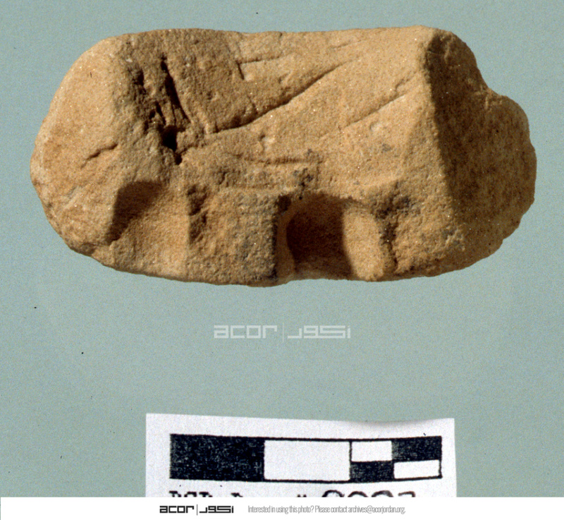 Carved stone object(frag). Bottom view. - Sq. C1. Studio. Locus 09/Pail 13. Reg #PCP 0002