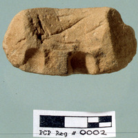 - Carved stone object(frag). Bottom view. - Sq. C1. Studio. Locus 09/Pail 13. Reg #PCP 0002