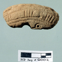 - Carved stone object(fragment. Top view. Sq. C1. Studio. Locus 09/Pail 13. Reg #PCP.0002.