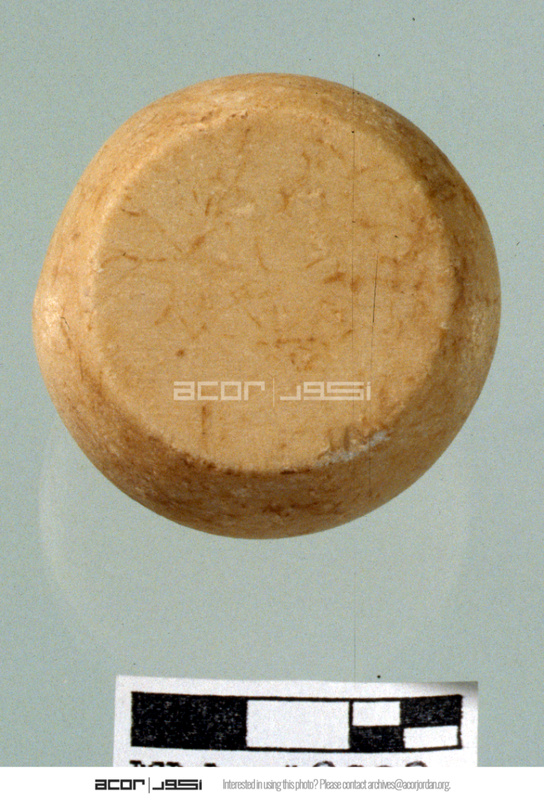 Carved stone object. Top view. - Sq. C1. Studio. Locus 15/Pail 22. Reg #PCP.0003.