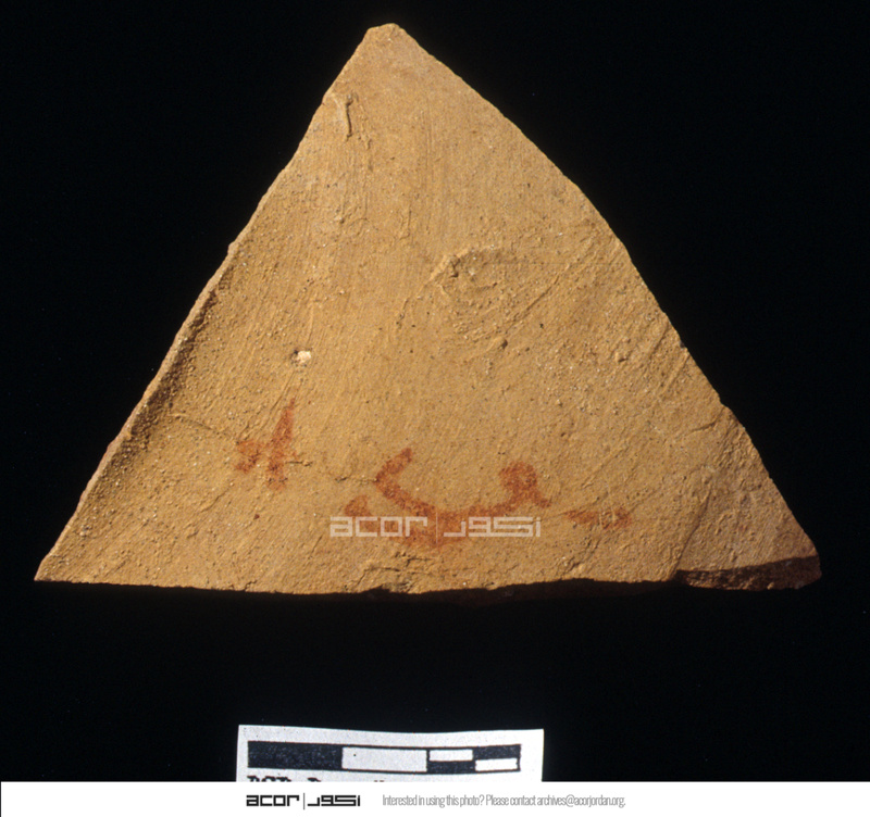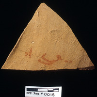 - Sherd with painted markings. - Sq. E1. Studio. Locus 11/Pail 17. Reg #PCP.0018.