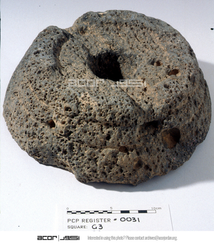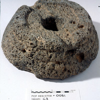 Grinding stone. Side View. Sq. G3. Studio. Locus 00/Pail 02. Reg #PCP.0031.