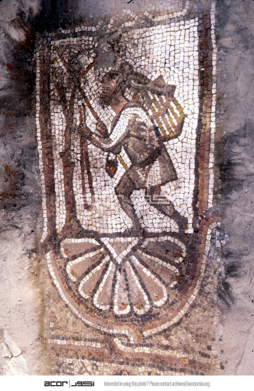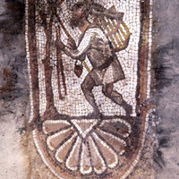Sq. B1. Close up of mosaic depicting a fowler and his falcon for publication.