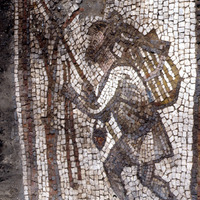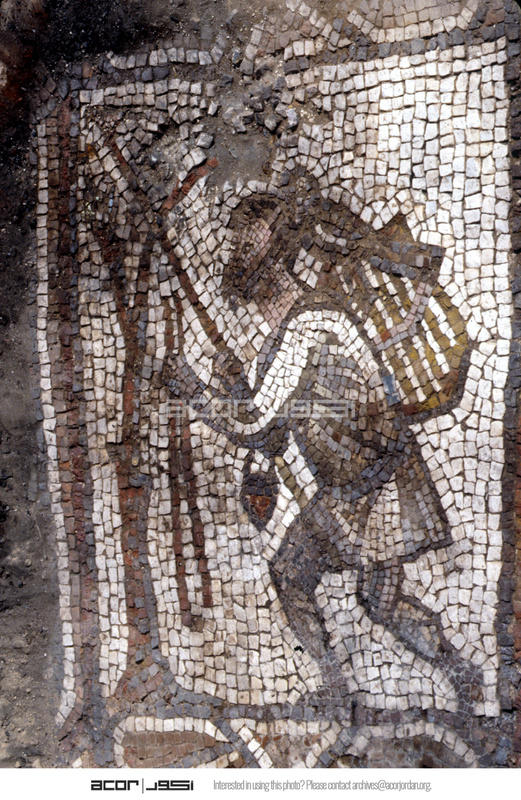 Sq. B1. Close up of mosaic depicting a fowler and his falcon for publication.