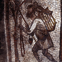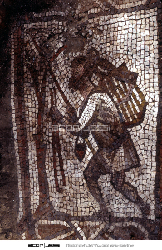 Sq. B1. Close up of mosaic depicting a fowler and his falcon for publication.
