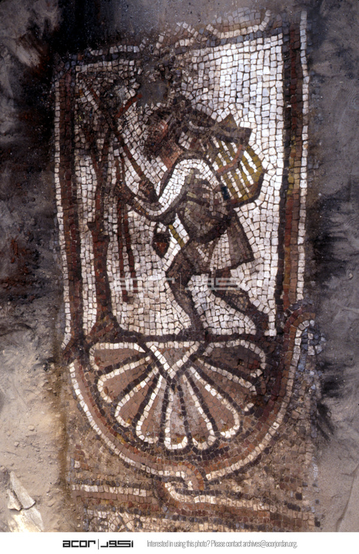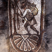 Sq. B1. Close up of mosaic depicting a fowler and his falcon for publication.