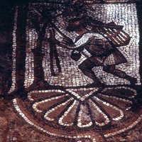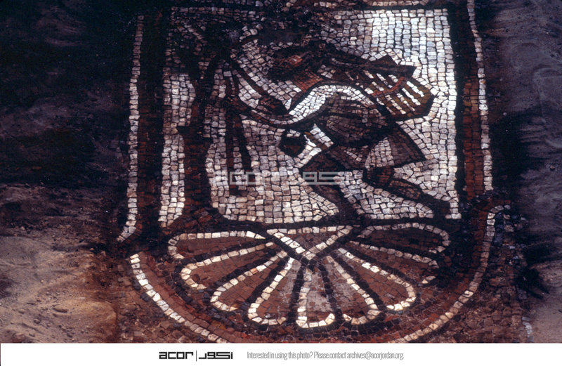 Sq. B1. Close up of mosaic depicting a fowler and his falcon for publication.
