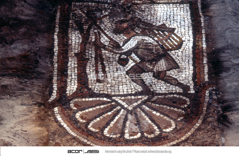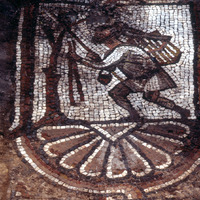 Sq. B1. Close up of mosaic depicting a fowler and his falcon for publication.