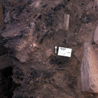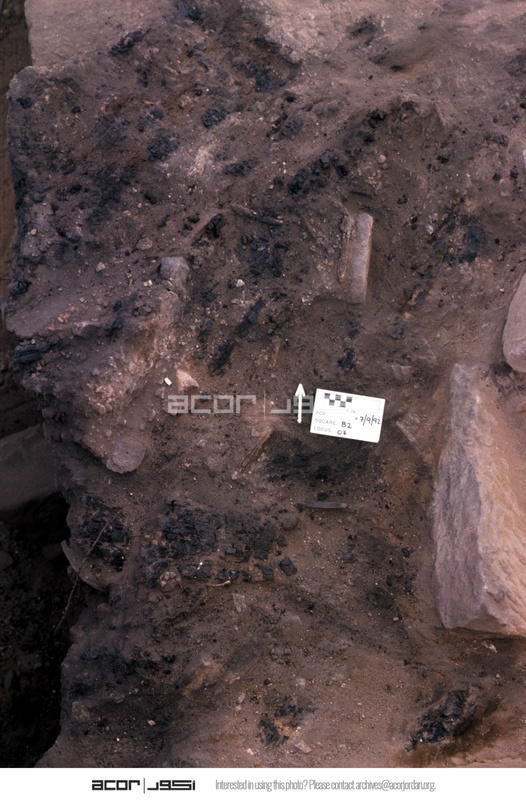 Charred wood. Aerial view to north. - Sq. B2. Locus 07.
