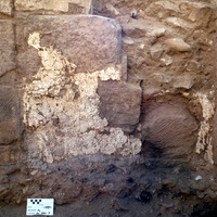 Wall plaster. View to east. CS only. - Sq. F4. Locus 02. Wall E.