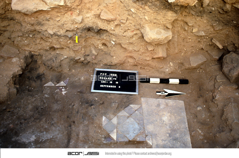 Marble floor tiles. View to west. - Sq. F4. Loci 16 & 19.