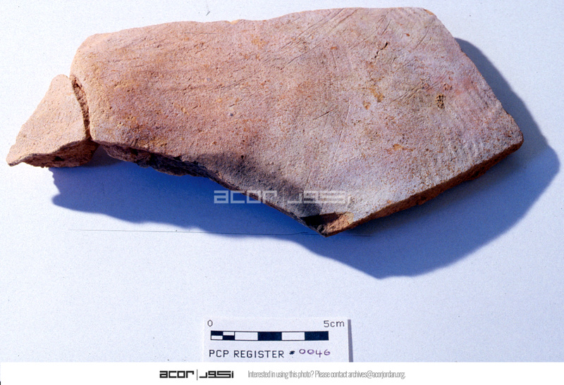 Base of vessel. Outer view. - Sq. B2. Studio. Locus 08/Pail 18. Reg # PCP.0046.