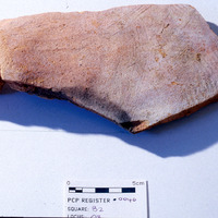 - Base of vessel. Outer view. - Sq. B2. Studio. Locus 08/Pail 18. Reg # PCP.0046.