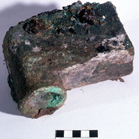 Cu/Cu alloy door hinge. - Sq. C1. Studio. Locus 26/Pail 59/FN21 reg #PCP.0027