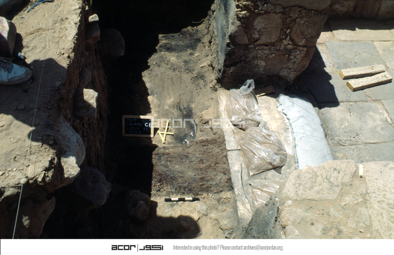 View to the south. Remains of interior wooden door to the east of marble threshold. Roll 3 - - Sq. C1. Doorway.