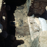- View to the south. Remains of interior wooden door to the east of marble threshold. Roll 3 - - Sq. C1. Doorway.
