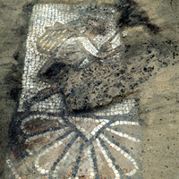 - South aisle. View to east. Half shell motif and figure with basket on his back. Roll 3 - - Sq. B1. Trial uncovering of mosaic pavement
