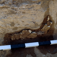 View to east. During pre-consolidation with Primal AC33. Roll 2 - 17. - Sq. C1. West face of Wall C (Locus 03)