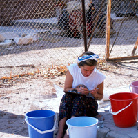 [Unidentified person sorting artifacts]