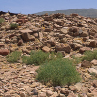 West rubble ridge. - View from south-west corner of fence to north east.