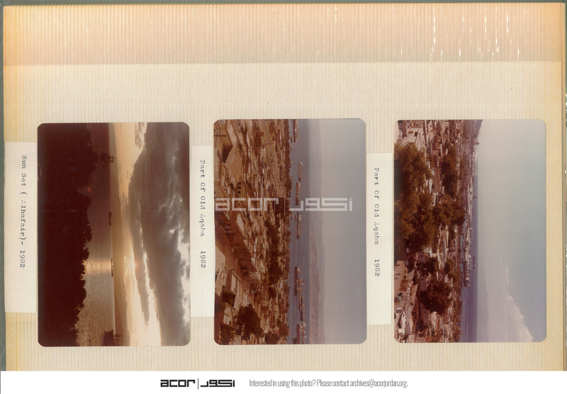 Part of Old Aqaba 1982, Sun set (Alhafair) 1982, Aqaba photo album from the early 1980s. Possibly created by Don Whitcomb or S. Thomas Parker.