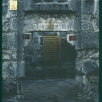 Three coat of arms and inscription with signs in Bodrum Castle