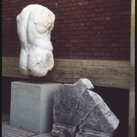 Torso from statue and stele with inscription