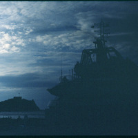 Silhoutted ship