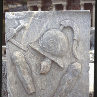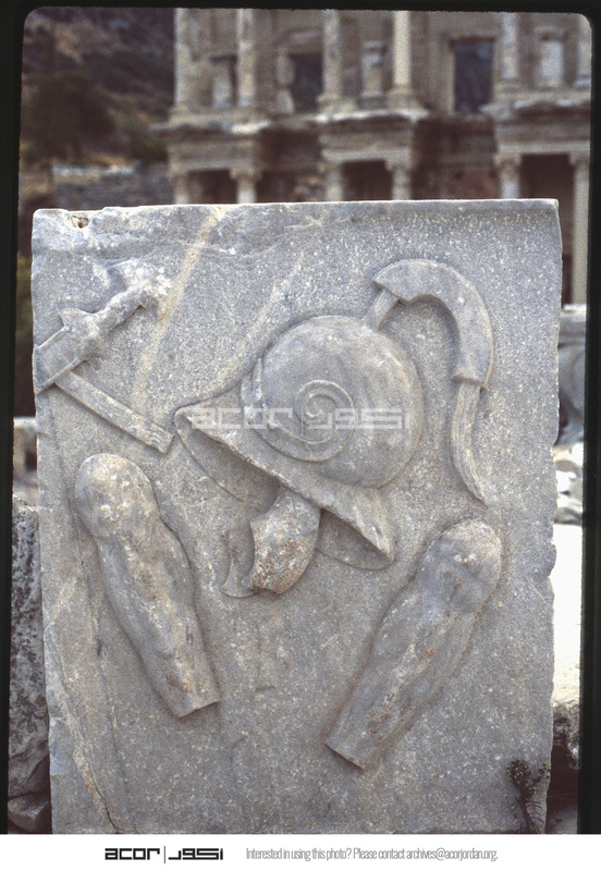 Detail of relief showing military helmet near Celsus Library