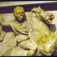 Detail of relief on Alexander sarcophagus depicting battle scene