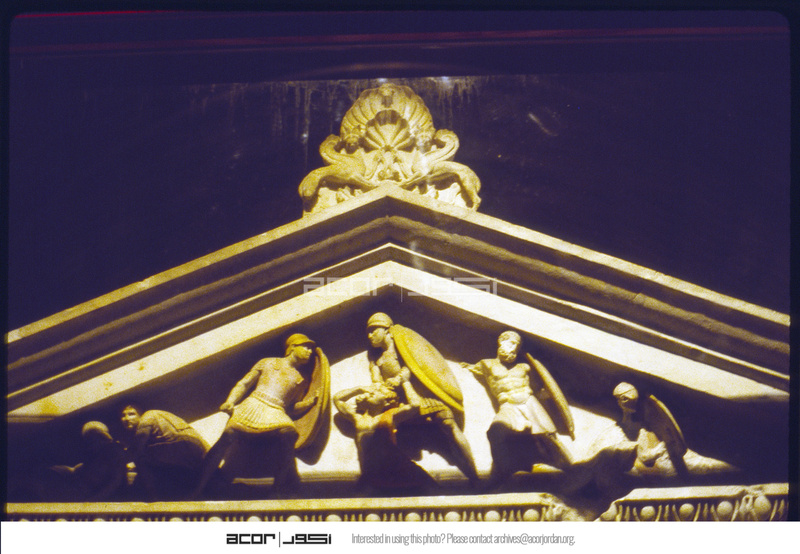 Detail of relief on Alexander sarcophagus pediment depicting battle