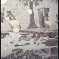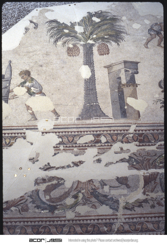 Detail of mosaic with palm tree and triumphal arch
