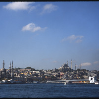 View of Istanbul showing New mosque and Suleymaniye mosque