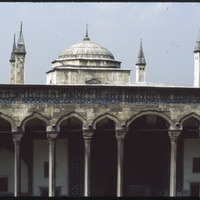 Exterior of Tiled Kiosk Museum with minarets in background