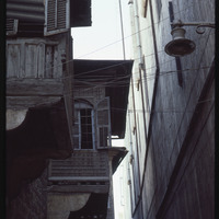 Narrow alley with mashrabiya in Al-Jdayde quarter of Aleppo