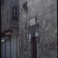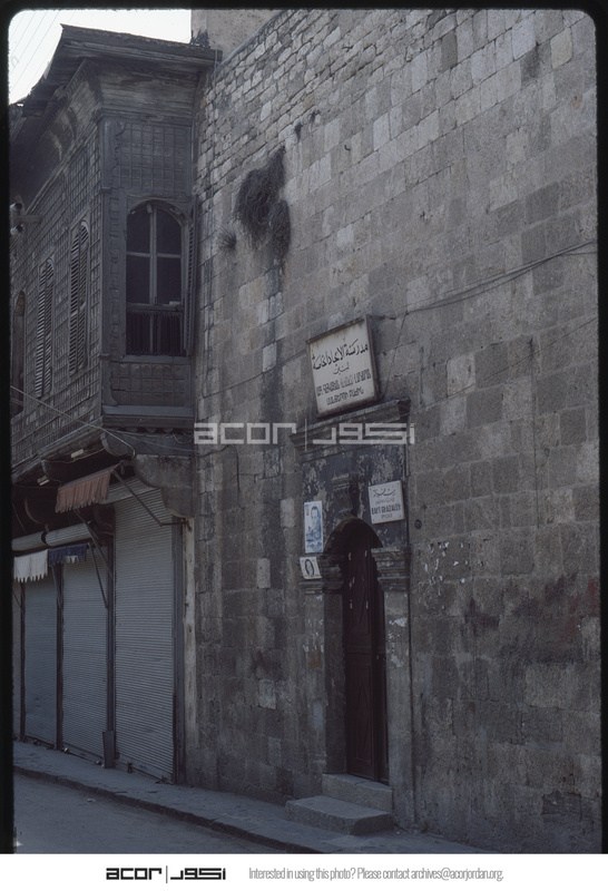 Entrance door to Beit Ghazaleh and Al Amjaad Private School in Al-Jdayde quarter of Aleppo