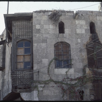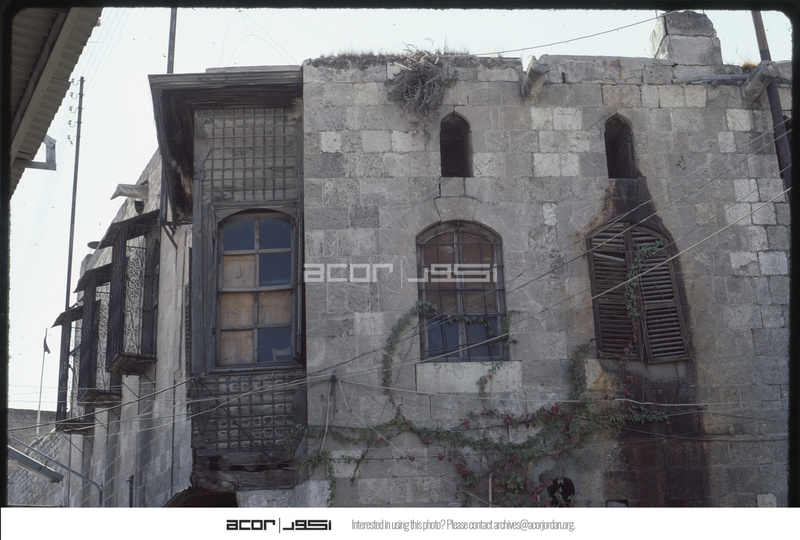 Facade of a historical building with mashrabiya at Al-Jdayde quarter of Aleppo