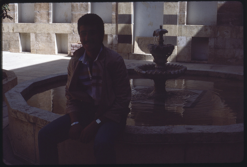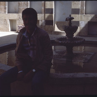 Man sitting on a fountain of Beit Ajqabash at Al-Jdayde quarter of Aleppo