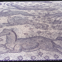 Detail of mosaic depicting a donkey and other animals in Aleppo Museum