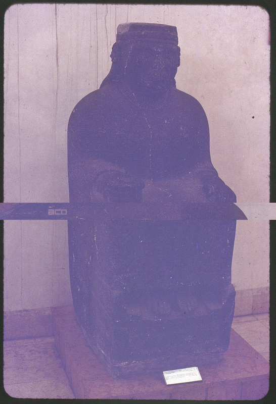 Detail of sculpture of seated figure with cup in Aleppo Museum