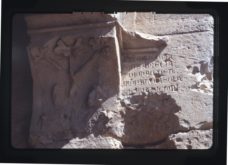 Detail of floral relief and Latin inscription