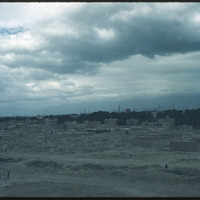Rug beaters with Rey and Teheran brick factories in bkgrnd (wages at brick factories: 4 rials, children; 15, men)