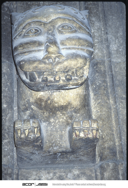 Detail of lion head sculpture in the Citadel of Aleppo