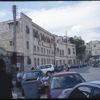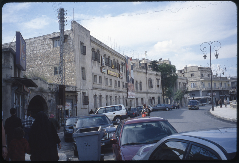 Street scene showing facade of historic building in Aleppo