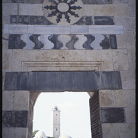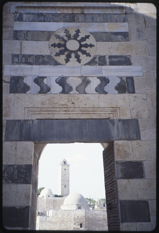 A view of the Great Mosque (Upper Maqam Ibrahim) from the Throne Hall in the Citadel of Aleppo