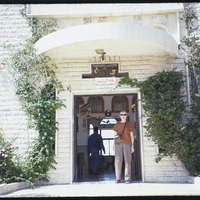 Person in front of restaurant