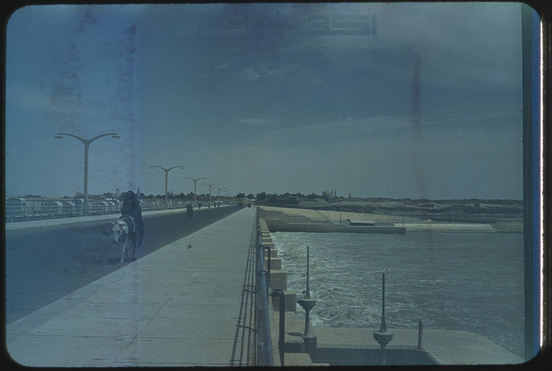 Tigris & donkey on bridge, gold-domed mosque right